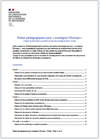 Pistes pédagogiques pour intégrer la dimension européenne dans les enseignements (cycles 1, 2, 3) :